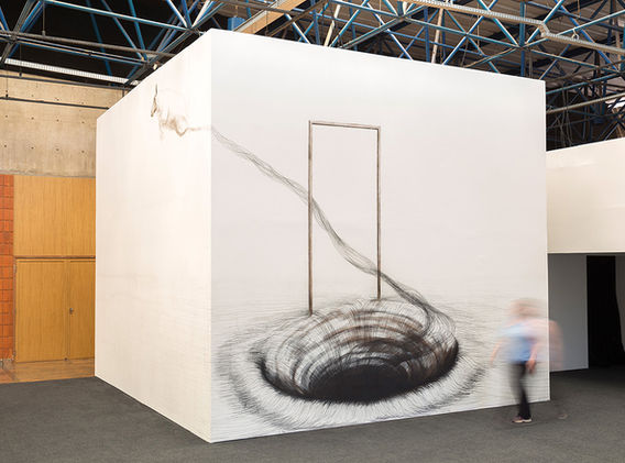 my eye," Manoel de Barros once said. The Diaspora, which the artist builds on this temporary architecture, takes place after the loss of the ground and the resulting experience of instability that generates contact with the unpredictable.